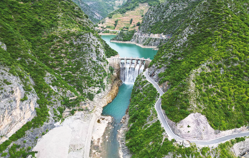 山峽間,由于大壩阻攔形成了“高峽出平湖”的景觀。