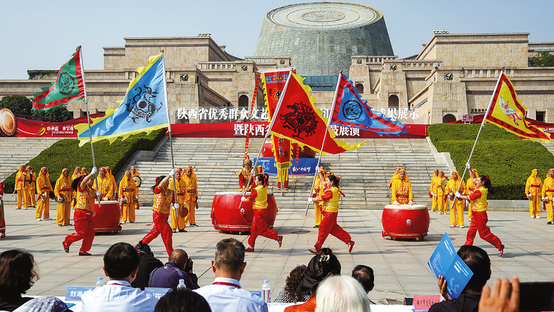 本報(bào)訊 (通訊員 鄭彩華 齊 苗)9月24日,陜西省優(yōu)秀群眾文藝團(tuán)隊(duì)“百團(tuán)會(huì)演”省級(jí)成果展示暨陜西省優(yōu)秀民間鑼鼓展演在寶雞市舉行,山陽(yáng)縣中村鎮(zhèn)省級(jí)非物質(zhì)文化遺產(chǎn)“八仙鼓”作為商洛唯一一支參演隊(duì)伍代表商洛市參加展演活動(dòng)。