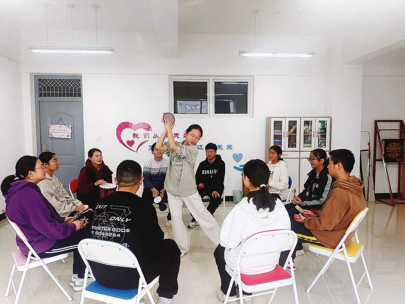 在“組團(tuán)式”幫扶的推動(dòng)下,山陽中學(xué)南校區(qū)建立了“心靈驛站”及蘇陜協(xié)作“組團(tuán)式”幫扶心理工作室。圖為南京心理學(xué)老師張文芳與學(xué)生互動(dòng)場(chǎng)景。