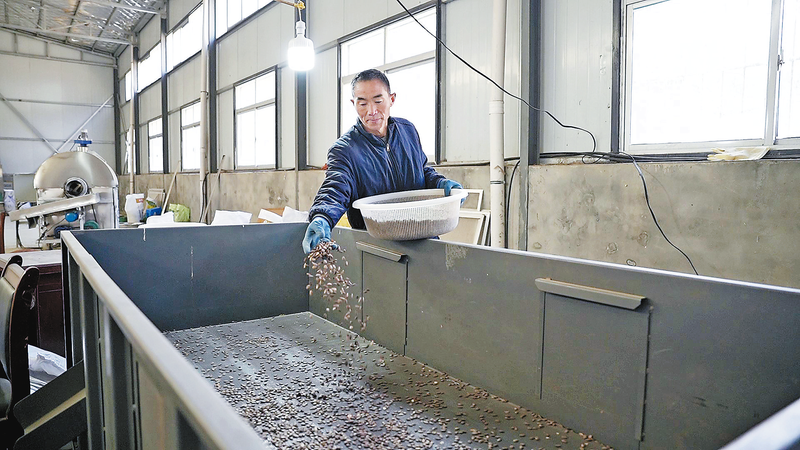 工人把瓜蔞籽放進烤箱