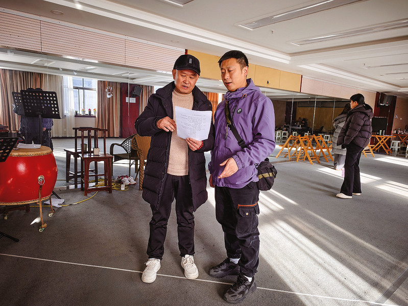 在山陽(yáng)縣劇團(tuán)的排練廳里,毛杰(左)正在教年輕演員演唱山陽(yáng)情歌。