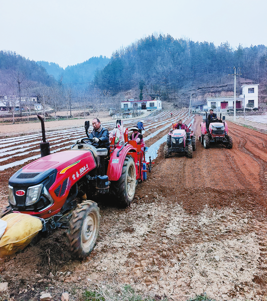 近日,趁著雨后放晴的有利時機,山陽縣農(nóng)業(yè)農(nóng)村局組織農(nóng)技人員深入田間地頭,指導農(nóng)戶搶抓墑情加緊播種馬鈴薯。據(jù)悉,今年該縣計劃糧食播種面積穩(wěn)定在四十二萬畝以上,目前已完成春播面積九點三萬畝。(本報記者 張英 攝)