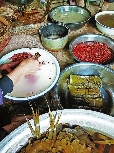 張芳棉家住商州區(qū)沙河子鎮(zhèn),由于三個(gè)兒女在城區(qū)工作生活,因此這些年她一直都在城里幫忙照看孫子、孫女,很少回老家。但每年端午節(jié)前,張芳棉都會提前到菜場去買好槲葉、蘆葦葉、小米、黃米、糯米、大棗、四季豆等材料,提前一天回到老家煮好槲葉、蘆葦葉、馬蓮,泡好米、四季豆。在端午節(jié)前那個(gè)周末,這一家人不管多忙,都會聚在一起包粽子。“自己包的粽子,好吃還放心,比在外面買的好多了。”張芳棉高興地說,“過節(jié)了大家都回來,多熱鬧呀。”