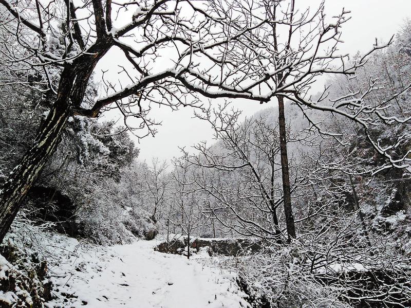 山路上的腳印,說明仍有勤勞的村民冒雪進(jìn)山