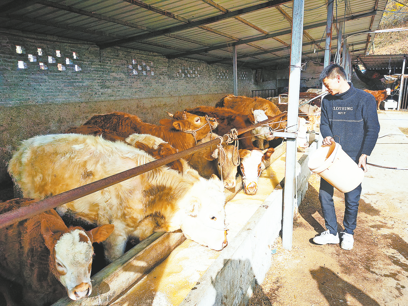 ?、鄄砜阡伌屦B(yǎng)殖戶張闖養(yǎng)殖了30多頭牛,依靠養(yǎng)牛穩(wěn)步增收。