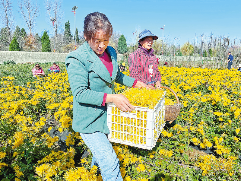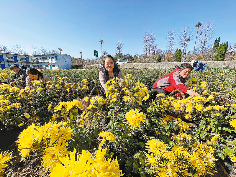 “我們種植了50畝金絲皇菊和杭白菊,采摘時(shí)間從11月開始,整個花期約一個月,這次按照成熟度,先采摘金絲皇菊。”盛世興農(nóng)種植示范基地管理人員介紹,今年4月份基地栽種菊花幼苗,經(jīng)過培土、起壟、施肥、移栽、滴灌、蓋地膜等流程,菊花在11月份成熟,預(yù)計(jì)金絲皇菊、杭白菊畝產(chǎn)分別在1000公斤、1100公斤,年收益28萬元左右,直接帶動周邊200多名村民就近就業(yè)增收。