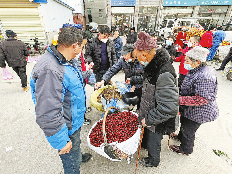 價(jià)格實(shí)惠的大棗和葡萄干吸引多人購(gòu)買(mǎi)