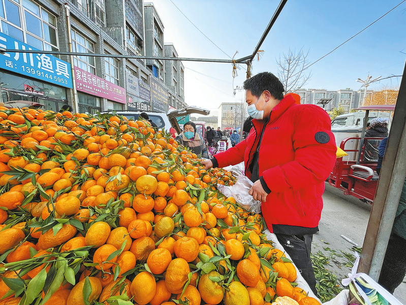 “我今天剛上來(lái),把蘋(píng)果賣(mài)完再賣(mài)自家種的白菜,趕集的時(shí)候人多不愁賣(mài)。”街道旁的水果商販笑著說(shuō),他從白楊店村過(guò)來(lái),快過(guò)年了,趁著趕集街道熱鬧的時(shí)候把貨賣(mài)完,既可以補(bǔ)貼家用,也可以早點(diǎn)置辦年貨。