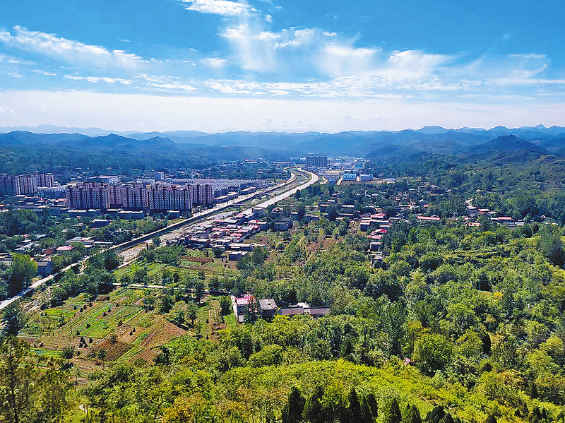 收回放飛的思緒,走出殿門(mén),發(fā)現(xiàn)自己還在高山之巔。藍(lán)天白云下,大荊川、清明河一覽無(wú)余,白墻紅瓦的村落錯(cuò)落在綠蔭之中。從古到今,商州北鄉(xiāng)的清明會(huì)年年在這里舉辦,熱鬧三天。