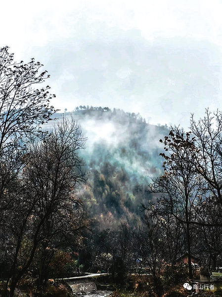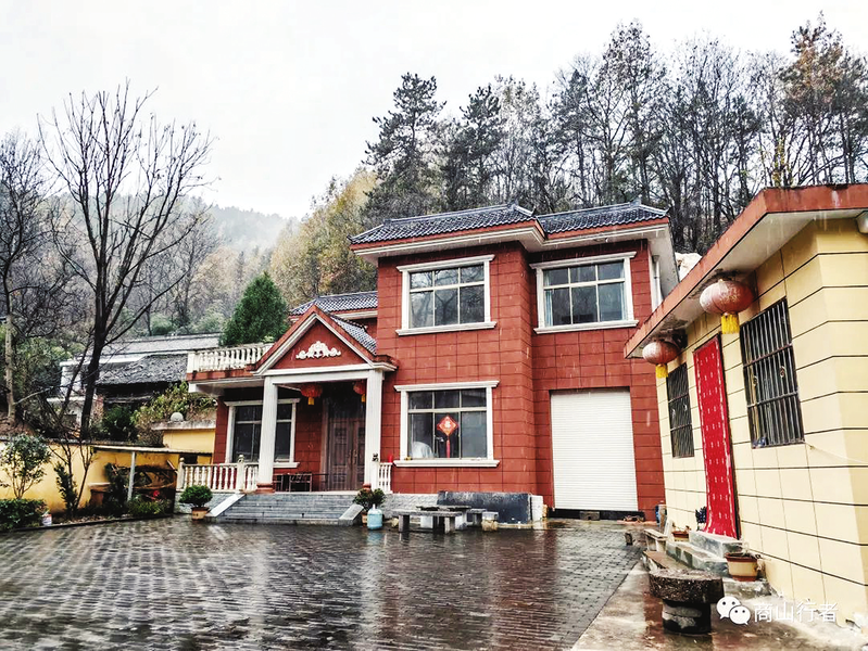 我們冒著雨夾雪,走在主溝的水泥路上,路邊是一行核桃樹,葉子已經(jīng)落盡,耕地平坦,莊稼收過,民居臥在坡根,多為磚混結(jié)構(gòu),還有一棟漂亮氣派的別墅。