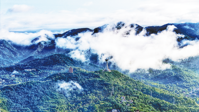 近日,雨后的商州區(qū)金鳳山上,繚繞的白云與山上的植被相呼應(yīng),形成了一幅優(yōu)美的生態(tài)畫卷。 (本報記者 楊 鑫 攝)