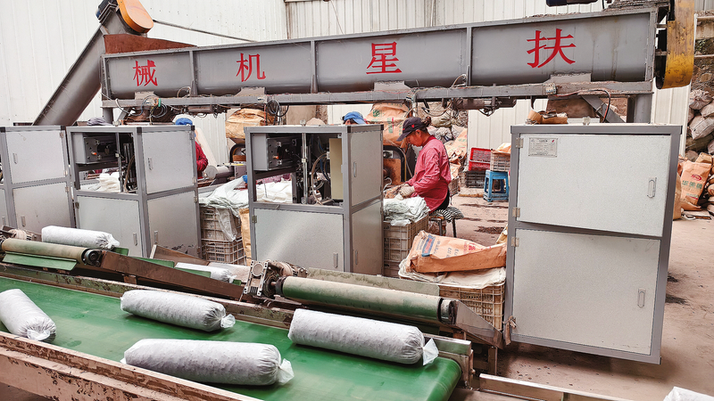 眼下正值香菇種植的重要關(guān)頭,楊斜鎮(zhèn)陜西千牛土地開發(fā)有限公司食用菌產(chǎn)業(yè)基地內(nèi)機械轟鳴,培養(yǎng)料堆旁,工人迅速將料鏟入裝袋機進料口,生產(chǎn)線上,工人們熟練地給香菇菌棒裝袋,現(xiàn)場忙碌而有序。