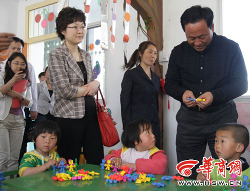 采訪團一行參觀了洛南縣景村鎮(zhèn)王澗幼兒園和古城鎮(zhèn)中心幼兒園,經(jīng)過認真仔細的考察和走訪,并聽取了幼兒園園長及教師在工作中的實際情況及困難。在了解到洛南縣在財政資金緊張的情況下重視幼兒學(xué)前教育,在幼兒學(xué)前教育取得如此優(yōu)異成績,教育部辦公廳副主任續(xù)梅表示,通過這次考察,對洛南的學(xué)前教育,尤其是農(nóng)村學(xué)前教育有了更全面的了解,洛南的學(xué)前教育走在了陜西的前列,也走在了全國的前列,對農(nóng)村留守兒童管理、教育工作做了極大的貢獻。