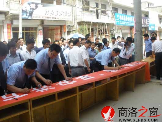 本網(wǎng)訊 5月19日,丹鳳縣竹林關(guān)鎮(zhèn)結(jié)合平安創(chuàng)建宣傳月活動(dòng),利用街道逢集,舉行“平安進(jìn)萬家,萬人促和諧”簽名活動(dòng)啟動(dòng)儀式,1000余名干部群眾參加了簽名。同時(shí),鎮(zhèn)司法所、綜治、水務(wù)、林業(yè)、計(jì)生服務(wù)城建、勞保等單位,派出所、法庭、交警隊(duì)、工商所、土管所等上掛部門向群眾進(jìn)行了法律、法規(guī)宣傳。(竹林宣/攝)