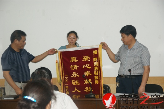 受助大學(xué)生陳曉惠向商南縣財政局獻(xiàn)錦旗