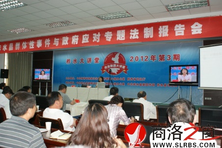 本網(wǎng)訊 (石紹東 黨水彬)6月15日,由中共柞水縣委依法治縣辦公室、縣委宣傳部和縣司法局聯(lián)合舉辦,特邀省“六五”普法宣講專家組成員、省行政學院曹亞茹教授作《群體性事件與政府應對》專題報告會,整個報告會設1個主會場和13個分會場,共有3000多人參加。這是柞水縣委、縣政府深入貫徹落實省十二次黨代會精神和“六五”普法規(guī)劃,著力提升各級領導干部預防、應對和處置群體性事件能力的重要舉措。