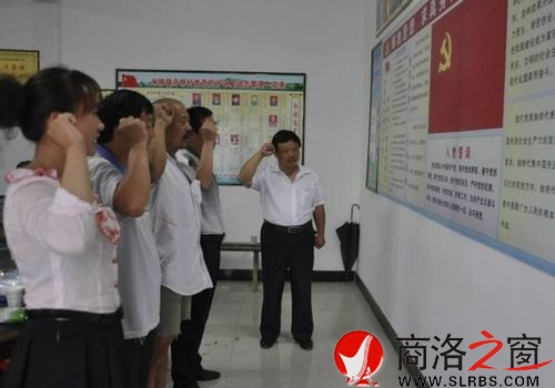 本網(wǎng)訊 (陳紹有)6月26日,在慶祝建黨91周年之際,鎮(zhèn)安縣米糧鎮(zhèn)月明村黨支部召開黨員大會,光榮的接收了李娥等4位產(chǎn)業(yè)致富帶頭人為納新黨員,圖為村支書蔣立強(qiáng)帶領(lǐng)納新黨員在鮮紅的黨旗下進(jìn)行入黨宣誓。