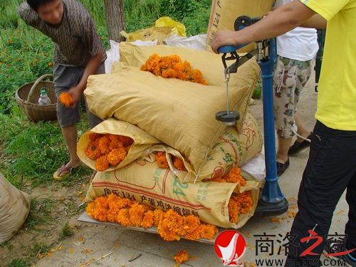 為了促進農(nóng)民增收,今年4月,洛南縣謝灣鎮(zhèn)政府適應(yīng)市場需求,鼓勵群眾種植了200多畝萬壽菊,并同西安華瑞公司簽訂了收購合同。經(jīng)過兩個月的生長,大田里萬壽菊競相開放,各種植戶全家總動員采摘著花朵,看著一包包的萬壽菊被裝車運走,他們的臉上洋溢著豐收的喜悅。