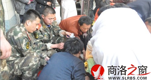 隨后商南縣消防官兵調(diào)來切割機(jī)配合醫(yī)護(hù)人員快速切掉傷者身體兩側(cè)多余的鋼管。經(jīng)過二十分鐘左右的緊張救援,消防官兵成功切割掉了露在傷者身體外的大部分鋼管,之后,傷者被大家抬到救護(hù)車上送往西安唐都醫(yī)院搶救。