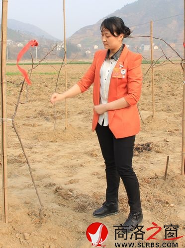 葉瑜察看村上新栽的優(yōu)質狝猴桃發(fā)芽成活情況