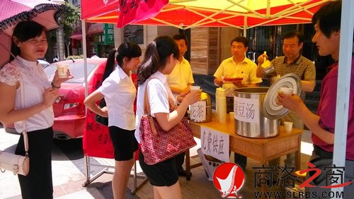 商洛日報訊(邱宏波)6月7日,洛南縣愛心人士把綠豆湯、菊花茶等消暑飲品送上街頭,免費(fèi)供給高考學(xué)生及家長飲用。