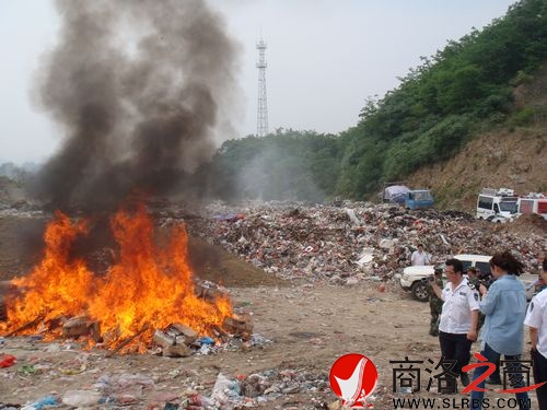 商洛日報(bào)訊(汪治 何祖華)為確保全縣飲食用藥安全,近日,商南縣食品藥品監(jiān)督管理局聯(lián)合公安、消防、衛(wèi)生、質(zhì)檢等部門機(jī)構(gòu),深入食品藥品生產(chǎn)、經(jīng)營單位開展假冒偽劣食品藥品檢查宣傳活動(dòng),強(qiáng)力打擊偽劣假冒食品和藥品的生產(chǎn)、銷售。圖為假冒偽劣食品藥品集中銷毀現(xiàn)場。