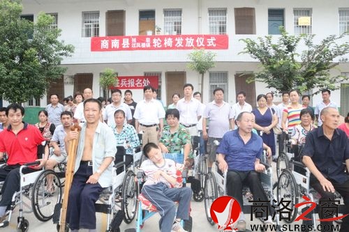商洛日?qǐng)?bào)訊(譚燕 孫傳卿)7月25日,商南縣殘聯(lián)向過(guò)風(fēng)樓鎮(zhèn)33名貧困肢體殘疾人捐贈(zèng)和發(fā)放輪椅,幫助他們解決出行困難。