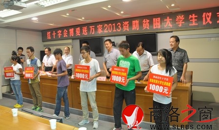 商洛日報(bào)訊(冀希亮)8月30日,洛南縣紅十字會開展“博愛送萬家2013資助貧困大學(xué)生”活動,為63位貧困大學(xué)新生每人發(fā)放1000元助學(xué)金。(冀希亮 攝)