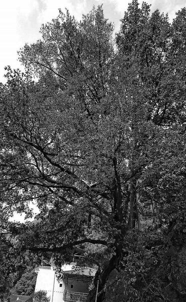 這是一簇叢生的灌木狀烏岡櫟,屬于國(guó)家一級(jí)保護(hù)樹(shù)種。整棵樹(shù)從根部分為5個(gè)主干,基部合起來(lái)約4人合圍,1993年就被柞水縣林業(yè)局掛牌為“國(guó)家重點(diǎn)保護(hù)樹(shù)木”。烏岡櫟是殼斗科櫟屬的常綠喬木,常生于山地巖石上,一般花期在3-4月,果熟期在9-10月。資料記載,它在我國(guó)長(zhǎng)江流域中下游和南部各省區(qū)生長(zhǎng),北至陜西均有分布。