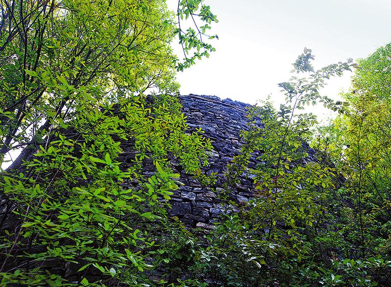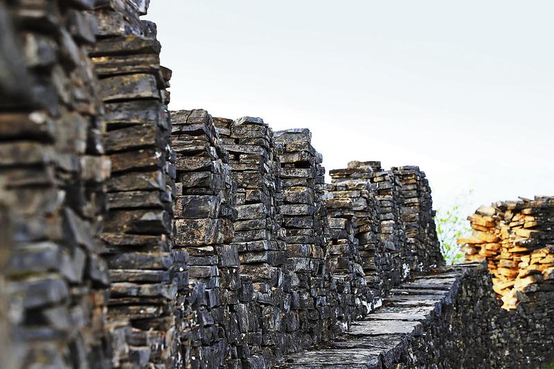 我們來到位于鎮(zhèn)安縣米糧鎮(zhèn)的西寨,山巔樹木橫生,寨墻高聳,散發(fā)著金屬光芒的黑色片石一層層壘砌成寬厚的鐵壁,顯得雄渾壯觀。西寨建在山脊上,易守難攻。據了解,這個山寨是當地群眾為躲土匪侵擾而建,寨內機關重重。如今,寨門左面內側還留有幾孔外小內大呈斗形的射擊孔。寨墻上有防翻石沿,寨門上方設有洞口,都有抵御外敵的作用。