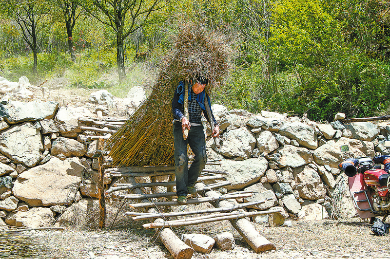 一路上和風(fēng)徐徐,滿目青翠。20多個(gè)民工在山上割苦竹,有的來自本縣,有的來自鄰縣,在這里集體吃住,男的砍、拉,女的在營(yíng)地做飯。他們把割下的苦竹交給老板,老板再拉到西安賣給菜農(nóng)。
