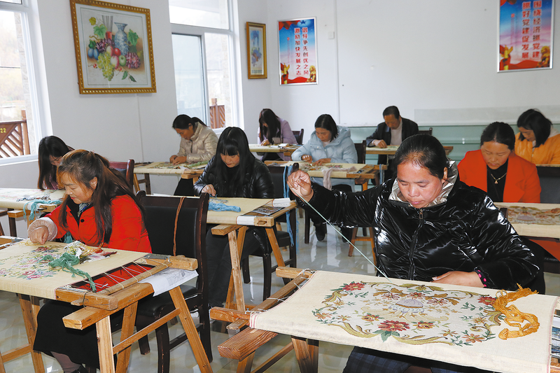 2022年,新冠疫情期間,江芳和村里婦女們繡的一些作品賣不出去,駐村工作隊了解到這一情況后,及時與葛良慧取得聯(lián)系,沒想到葛良慧全部收購了她們的作品,并一次性支付了20多萬元。此后,江芳便組織了金絲峽鎮(zhèn)50多名繡娘常年跟著葛良慧干。