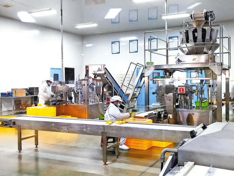 1月5日,鎮(zhèn)安縣陜西合曼農業(yè)科技有限公司食品加工車間內,工人正在流水線上作業(yè)。該公司立足本土特色資源,聚力推進板栗、核桃等特色產品深加工,其所持有的“合曼萬家食客”商標被評為2023年“陜西好商標”。 (本報通訊員 楊建東 攝)