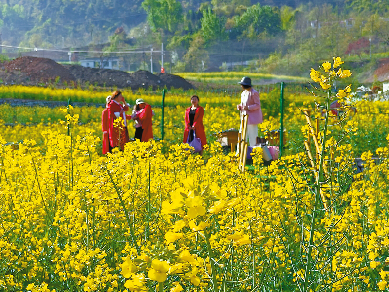 近日,鎮(zhèn)安縣永樂街道廟坡村300多畝油菜花競相綻放,吸引眾多游客賞花踏青。2023年,廟坡村開始規(guī)模發(fā)展油菜產(chǎn)業(yè),油菜籽成熟后為農(nóng)戶帶來穩(wěn)定收益,春天盛開的油菜花海成為鄉(xiāng)村旅游的一大亮點。同時,村上養(yǎng)蜂300箱,利用油菜花海提供的豐富蜜源,生產(chǎn)高質(zhì)量的蜂蜜產(chǎn)品。 (本報通訊員 惠曉麗 攝)