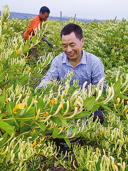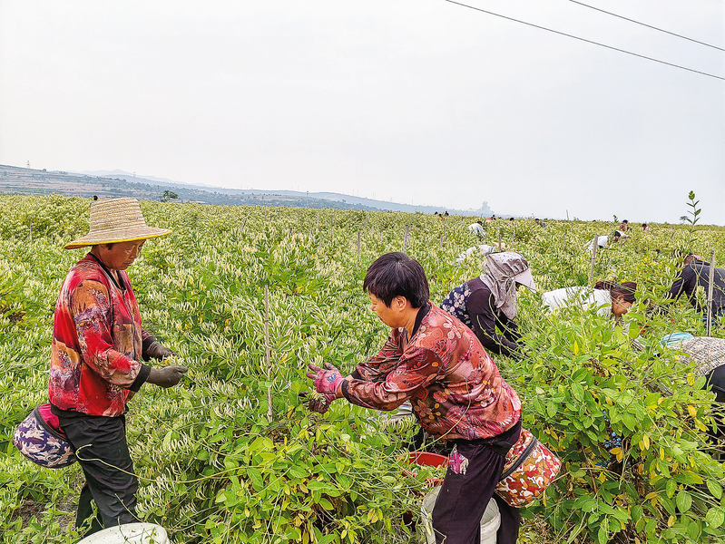 5月25日,鎮(zhèn)安縣農民工正在渭南一金銀花種植基地采摘金銀花。近日,鎮(zhèn)安縣同舟濟人力資源公司向渭南輸出3批次300多名務工人員,工期40天,采摘結束后將轉移至銅川繼續(xù)務工20天,預計2個月總收入300多萬元,人均收入在1萬元以上。