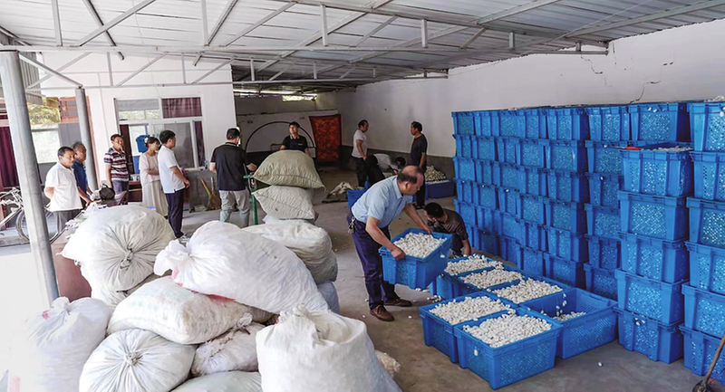 麗光村的蠶繭收購現(xiàn)場