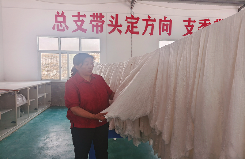 “我們村現(xiàn)在已經(jīng)有完整的蠶桑產(chǎn)業(yè)鏈,從種植、養(yǎng)蠶到蠶絲加工,實(shí)現(xiàn)了‘一條龍’服務(wù),合作社注冊創(chuàng)立的‘紅雙喜’‘錦繡前程’品牌蠶絲銷售很旺。”陰生芝介紹。