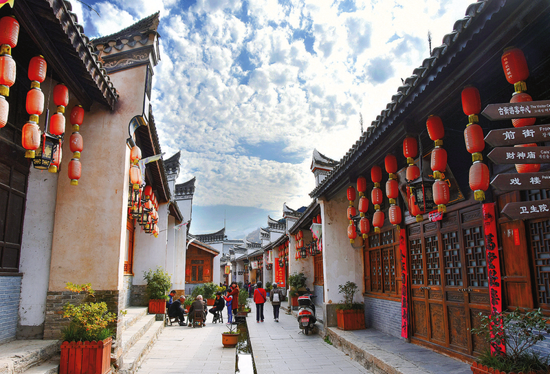 漫步具有江南水鄉(xiāng)韻味的云蓋寺古鎮(zhèn)老街,青石板鋪就的街道蜿蜒曲折,每一塊石板都承載著無數(shù)行人的足跡,訴說著往昔的故事。街道兩旁,明清古建筑錯落有致,雕梁畫棟,古色古香。“四水歸堂”式的天井庭院里,那些斑駁的墻壁上隱約可見彩畫和磚雕,依稀勾勒出當年的繁華盛景。