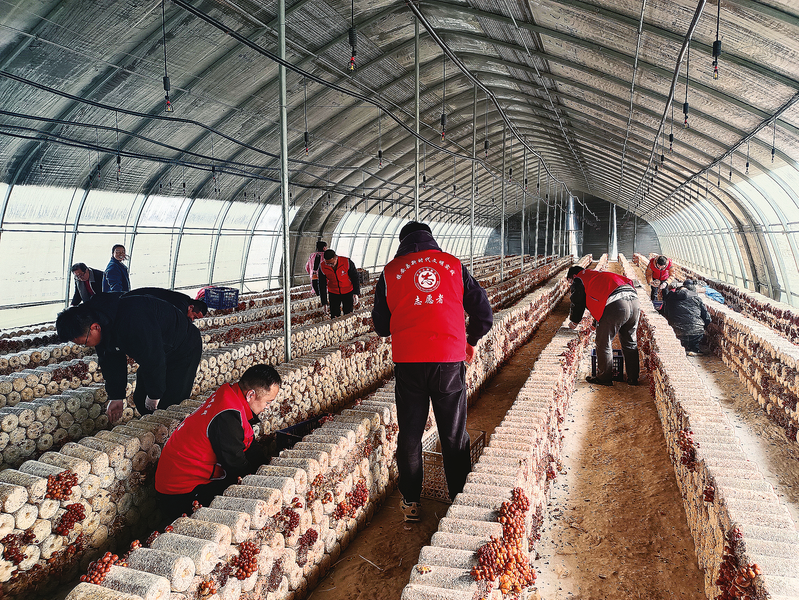 “今年頭茬滑子菇長勢好、成熟快,采收人手緊缺。除了本村婦女幫工,鄰村也有人前來務(wù)工。這不,鎮(zhèn)上的‘民族之花’巾幗志愿服務(wù)隊也來了六七個人幫忙。”鎮(zhèn)駐村干部惠德田介紹,“今年村上已投產(chǎn)20萬袋菌棒,頭茬已產(chǎn)出鮮滑子菇1萬公斤,制作腌漬菇6000公斤。隨著種植規(guī)模擴大,成熟時需要大量婦女勞力參與采摘。”