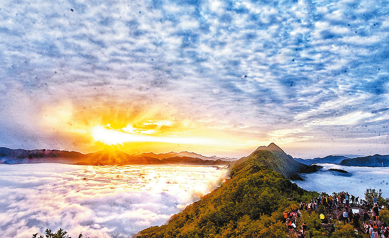 夏季到來,我市多地的云海美景也進入了最佳觀賞期。6月8日清晨,鎮(zhèn)安縣永樂街道安山村的海棠山上,百余名游客在周末趕來觀賞云海美景。 (本報記者 楊 鑫 攝)