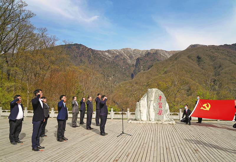柞水縣委理論學(xué)習(xí)中心組成員在牛背梁進行現(xiàn)場實景教學(xué)