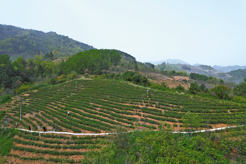在和暖的春風(fēng)中,陣陣茶香沁潤(rùn)心頭,連片的白茶、龍井、金萱等茶樹從山腳綿延至山頂,昔日荒山變成了如今的青山,成為當(dāng)?shù)厝罕娫鍪罩赂坏?ldquo;金山銀山”。