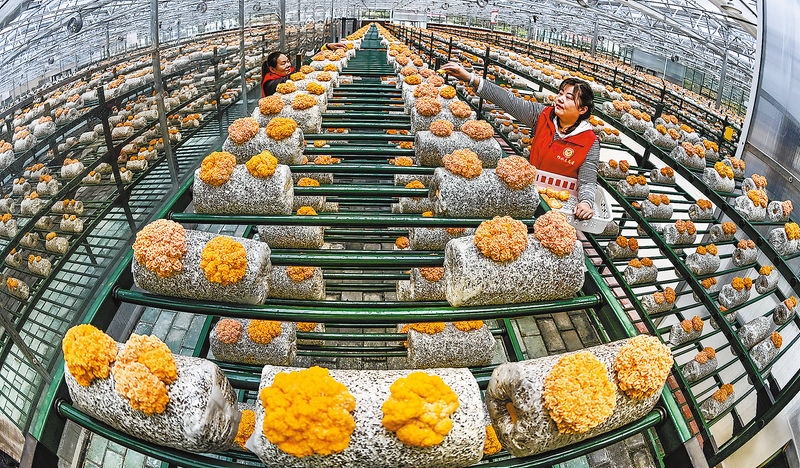 金米村村民在金米智慧農業(yè)產業(yè)園采摘金木耳。今年開始種植的金木耳,第一茬10萬袋、秋季6萬袋。