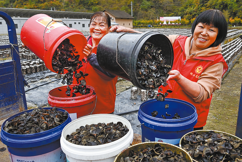 金米村村民在采摘木栽木耳。小木耳長成大產業(yè),成為帶動村民致富的“金鑰匙”。