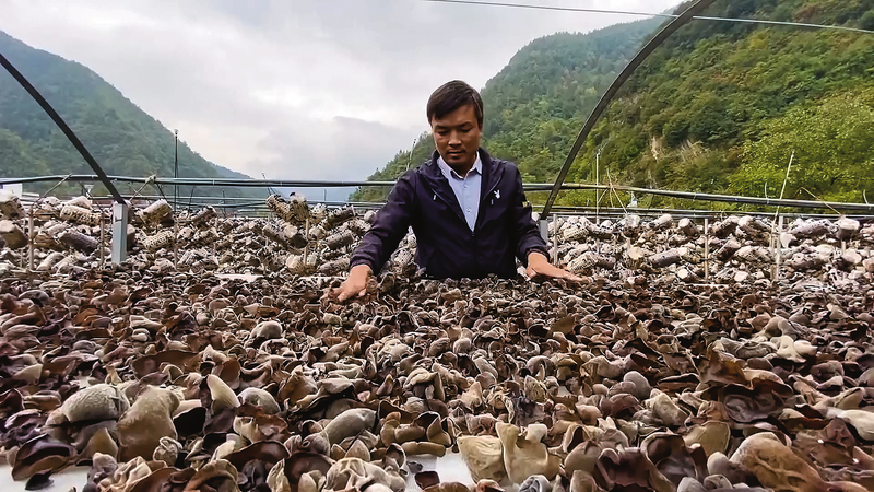 耳農(nóng)帶頭人肖青松在晾曬木耳