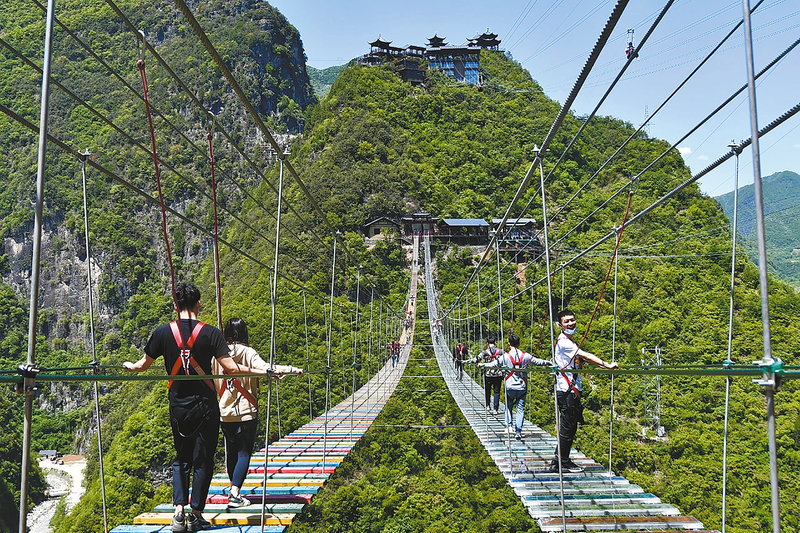 游客在柞水飛躍終南極限運(yùn)動(dòng)公園游玩