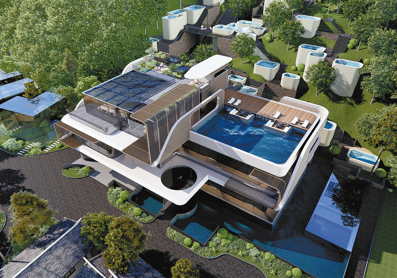 柞水縣營(yíng)盤鎮(zhèn)的商洛秦嶺花間境·林隱酒店整體效果圖