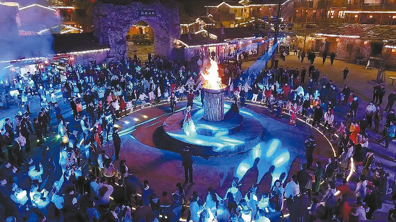 柞水縣終南山寨景區(qū)熱鬧的篝火晚會(huì)