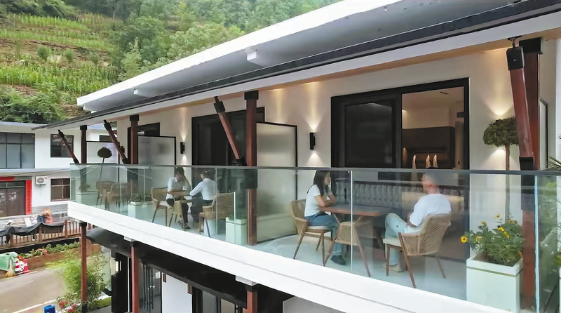 在距銀杏樹不到100米處,五彩斑斕的山溝里,精致漂亮的觀山民宿建筑群格外引人注目。“今年,我們銀杏谷流轉(zhuǎn)了10戶民房,在保留陜南農(nóng)家民房特色的基礎(chǔ)上,融合了民宿建設(shè)的全新理念、時(shí)下流行的時(shí)尚元素,打造了高端觀山民宿,主要由‘見山’‘聞水’‘清心’‘悅己’4個(gè)院子組成,以親近自然為特點(diǎn),房間均有露臺(tái),屋頂設(shè)計(jì)了露天天臺(tái),可近距離觀山賞月。”觀山民宿項(xiàng)目負(fù)責(zé)人介紹,7月份試運(yùn)營(yíng)以來,吸引當(dāng)?shù)卮迕?0多人參與民宿業(yè)態(tài)運(yùn)營(yíng)管理,帶動(dòng)效應(yīng)十分明顯,10月份國(guó)慶長(zhǎng)假期間生意火爆。