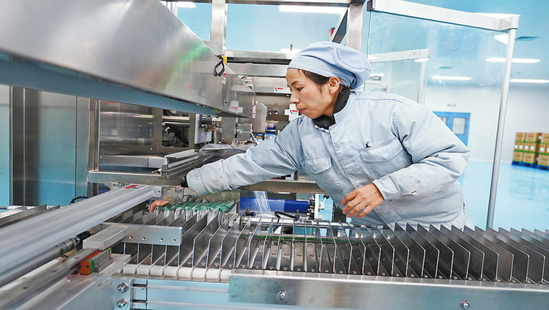工人對(duì)中藥顆粒進(jìn)行分類(lèi)包裝